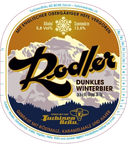 Das «Rodler» ist ein dunkles, obergäriges Winterbier. Die Verwendung von Hafer im Brauprozess verleiht ihm eine besondere Note, die durch die Zugabe von englischem Hopfen abgerundet wird.